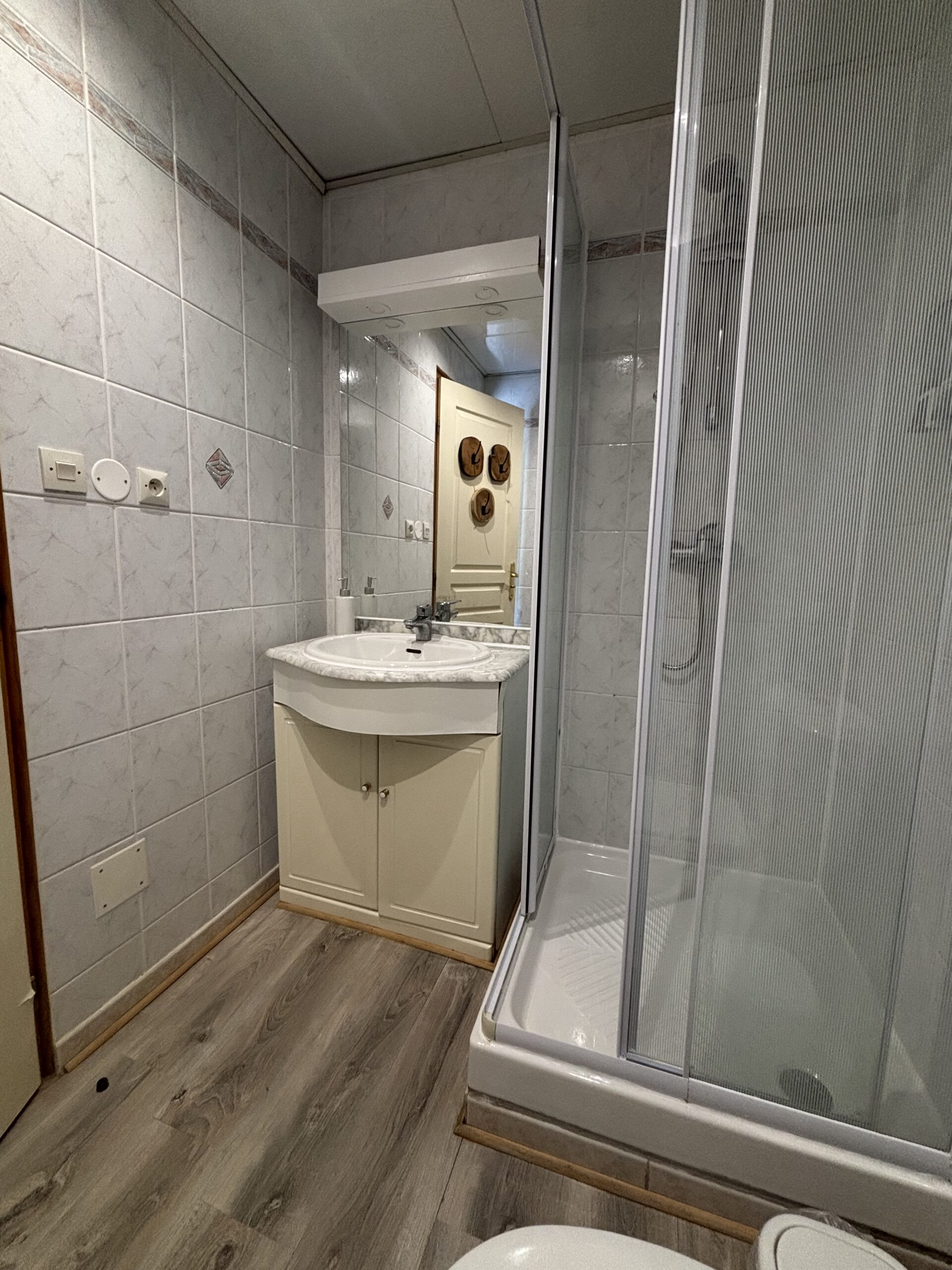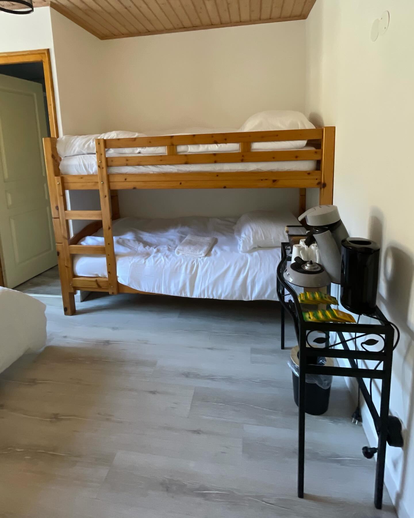 Chambres avec salle de bain pour 4 personnes, avec un lit double 160×190 et un lit superposé 80×190, ou deux lits simples 80×190 et un lit superposé 80×190